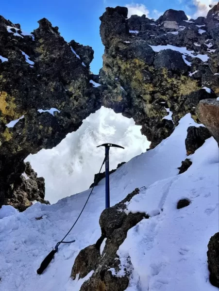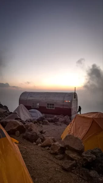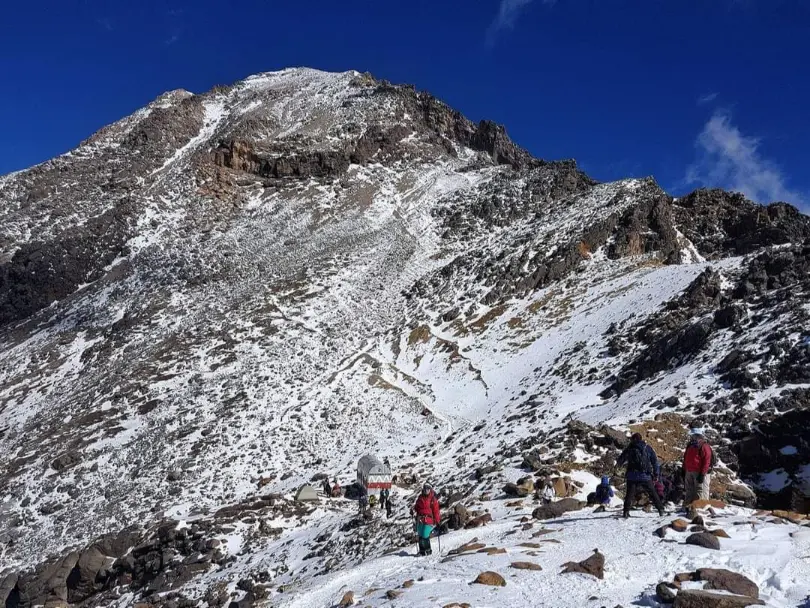 Al aproximarte al refugio, los paisajes adquieren una majestuosidad única: paredes rocosas que desafían el cielo, glaciares que recuerdan la antigüedad de la tierra y un silencio profundo que solo se rompe con el viento golpeando las cuerdas de tu mochila. De pronto, ahí está: el Refugio de los 100, firme y resistente, suspendido entre nubes y roca, observando serenamente el Valle de México desde los 4,780 metros sobre el nivel del mar.