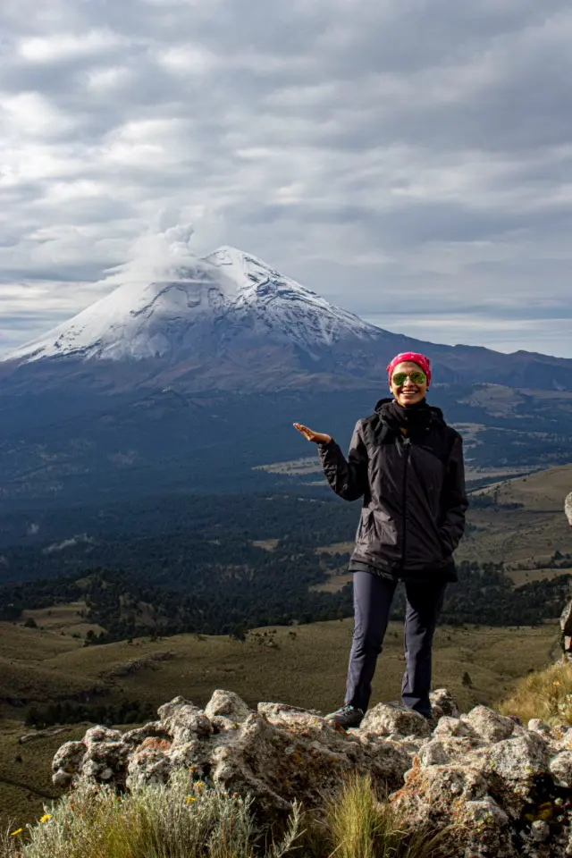 Llegar hasta este punto no es solo una caminata; es un encuentro íntimo con uno de los volcanes más icónicos del país, un viaje que exige determinación, respeto y asombro. Desde aquí, la vista es un regalo: el Popocatépetl respirando al fondo, el cielo encendido por el sol, y tú, convertido en parte de este paisaje indomable.